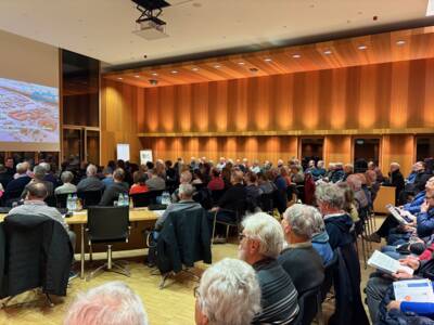 Im Anschluss an den Vortrag nutzten viele Besucherinnen und Besucher die Gelegenheit zum Austausch mit den Referenten sowie den Bürgermeistern der drei Kommunen. Dabei standen insbesondere Fragen zu technischen Lösungen im Zielszenario sowie zur Wärmespeicherung im Fokus.