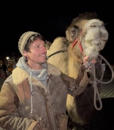 Bild 1: Kamel Ali und sein Besitzer Konstantin Klages beim Laternenumzug in Feldkirchen.