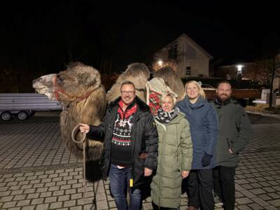 Beim Laternenumzug der Gemeinde Feldkirchen am 18.11.2025 wartete auf die teilnehmenden Kinder und Familien eine ganz besondere Überraschung: Kamel „Ali“ begleitete den Umzug als tierischer Stargast und sorgte für strahlende Augen und große Begeisterung.