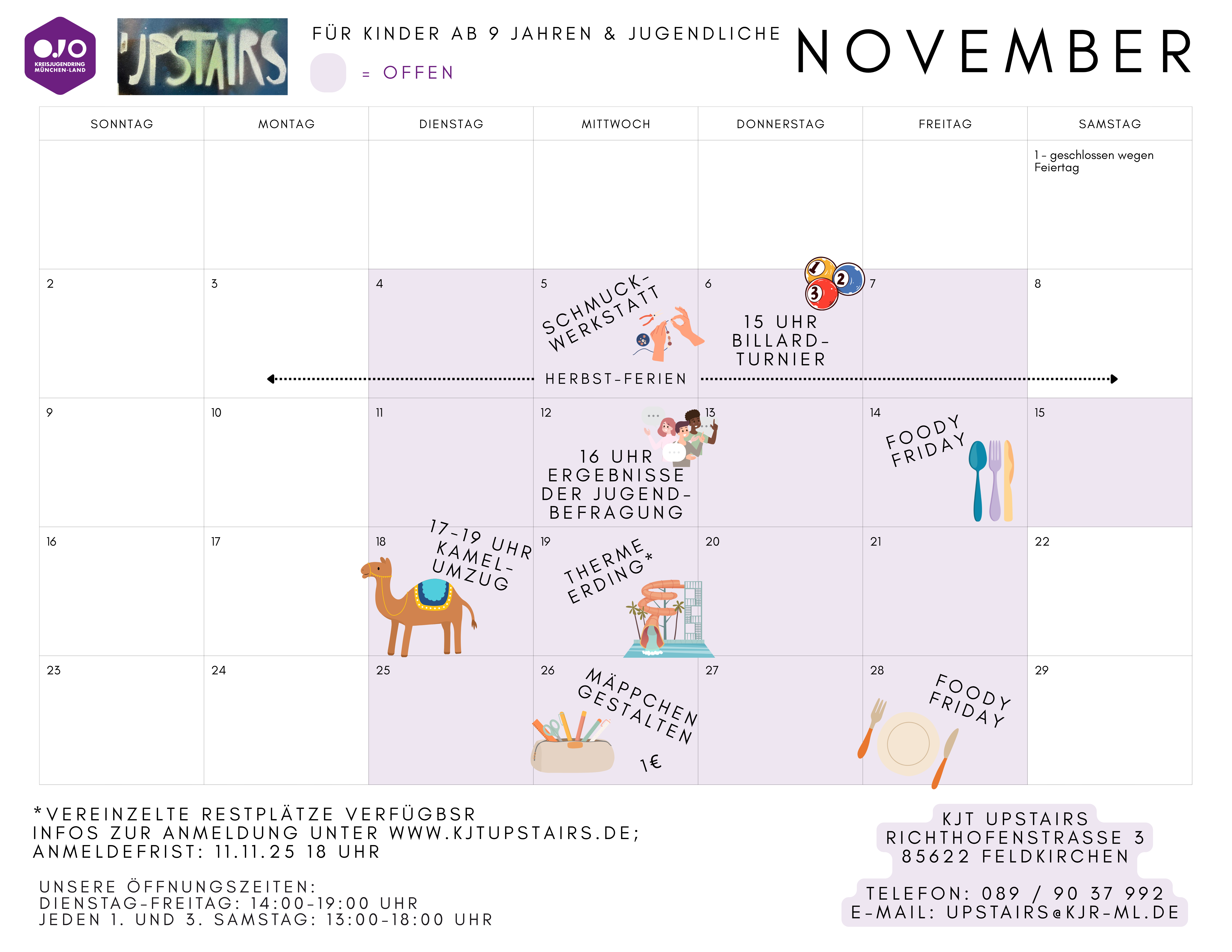 Das UPSTAIRS ist der Treffpunkt für Kinder, Jugendliche und junge Erwachsene im Alter von 9 bis 27 Jahren in Feldkirchen bei München.